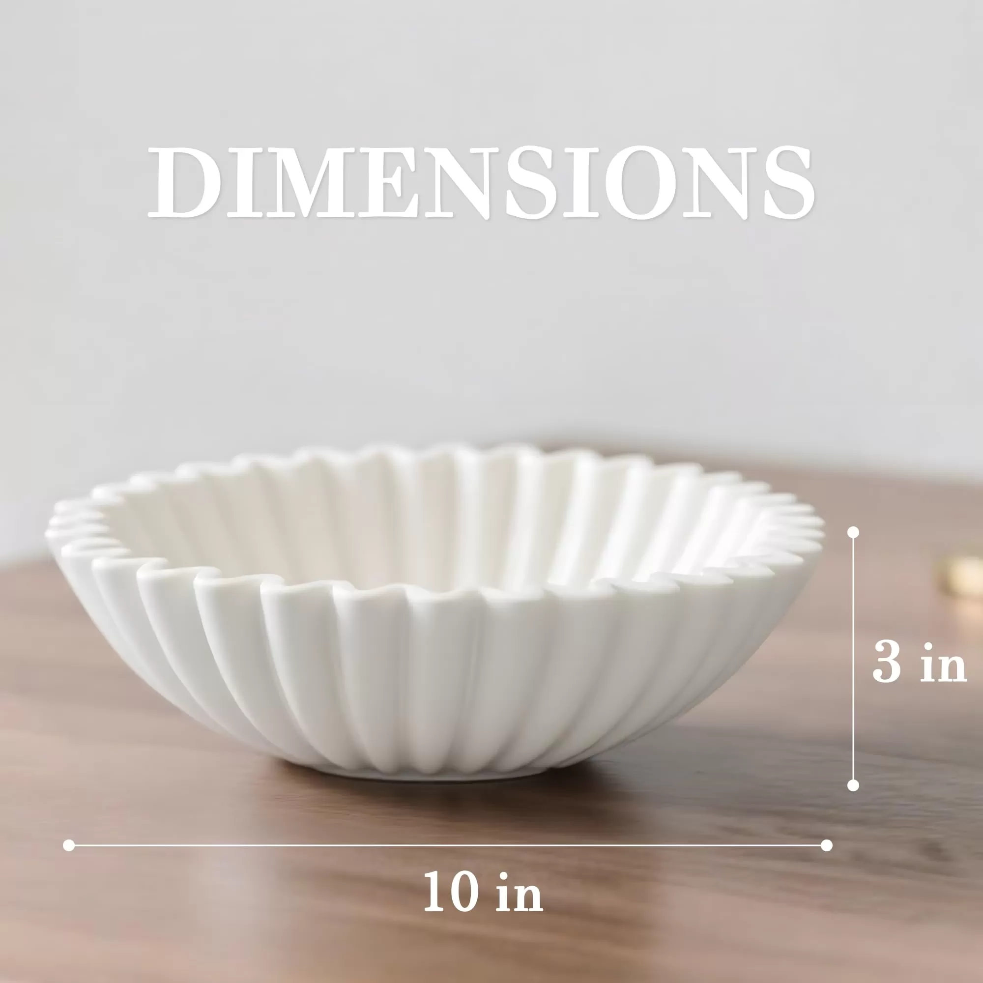 VERSATILE DESIGN: Large scalloped ceramic bowl perfect for displaying fruits, decorative items, or collecting keys in your entryway or coffee table