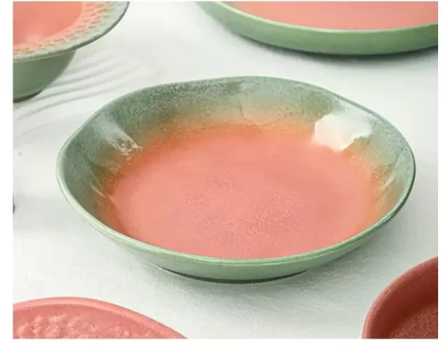 Welcome to purchase bulk plates and bowls. Our pink-green ceramic wholesale dinnerware sets have soft and fresh colors, delicate and three-dimensional glaze, and various shapes. It is suitable for hotels, restaurants and multi-scene dining needs. High-quality craftsmanship and mass customization services are ideal for creating an elegant dining environment.