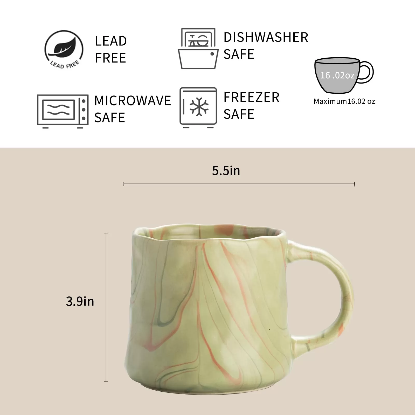 Generøs kapacitet og alsidig brug: Nyd dine yndlingsdrikke med stil med lækkerier i massevis kaffekrus, der kan prale af en stor 16 oz kapacitet, der er perfekt til kaffe, te, lattes og mere. Dens rigelige størrelse gør det til et ideelt valg for dem, der elsker at nyde deres drinks og forblive opdateret hele dagen.