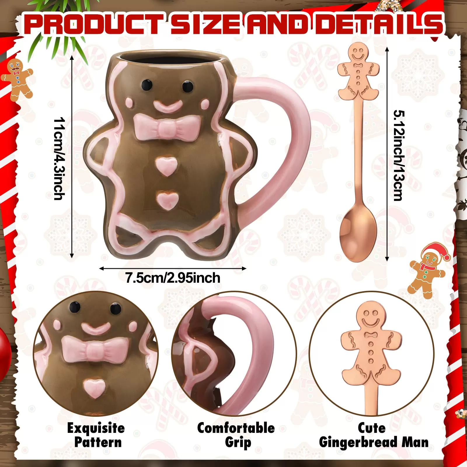Adorable Gingerbread Man Set: esta taza de pan de jengibre rosa viene con una cuchara de hombre de pan de jengibre dorado a juego, creando un conjunto adorable; Ya sea que esté elaborando leche de soya, avena, café o té, la cuchara permite agitar completamente; El diseño en forma de pan de jengibre agrega un toque de festival y encanto festivo, por lo que es imprescindible tener un accesorio elegante para las mujeres y una adición a cualquier colección de taza; Disfrute de sus bebidas favoritas durante las vacaciones de invierno y más allá