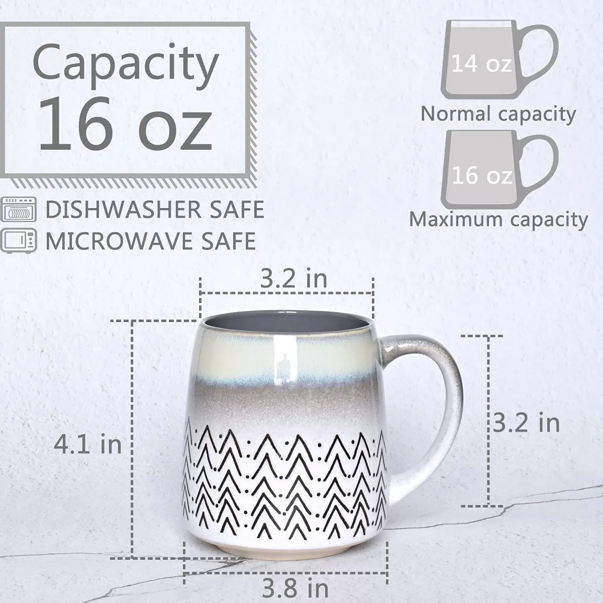 Resistente y duradero: diseñado con una fuerte construcción de cerámica, hecha de cerámica de alta calidad sin plomo, sin cadmio. Adecuado para bebidas frías y calientes. Lavavajillas y microondas seguros.