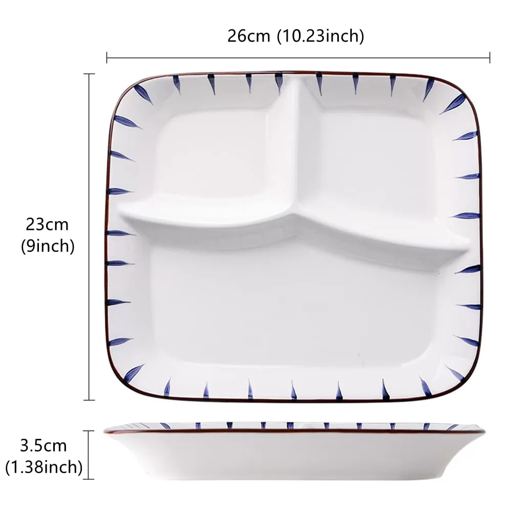 Platos divididos de cerámica con tres compartimentos, cada compartimento no permite que los alimentos se mezclen entre sí y mantengan su sabor.