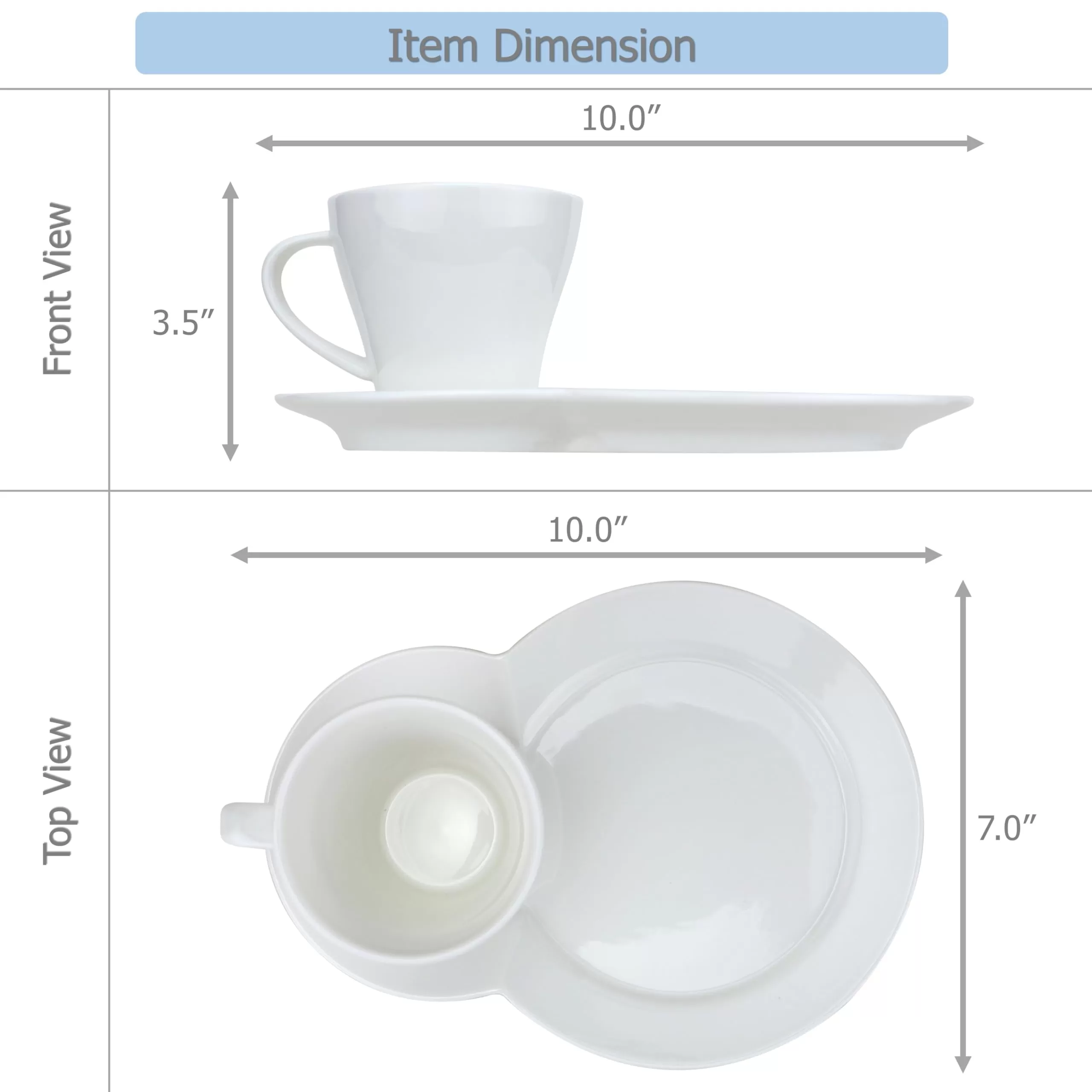 | Característica especial | Capacidad ideal de 7.8 oz, cerámica blanca brillante, apto para lavavajillas y microondas, versatilidad para bebidas frías y calientes, diseño integrado de taza y platillo |
