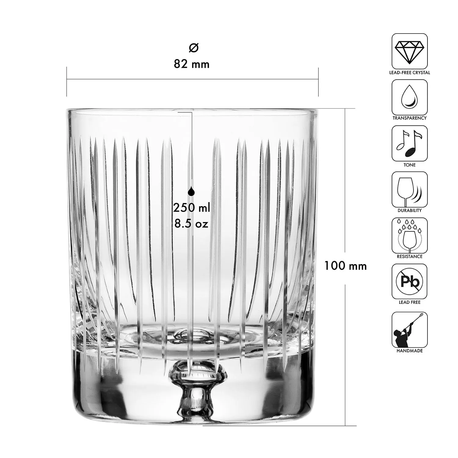 Saga Collection プレミアム ウイスキー タンブラー – Krosno の象徴的な Saga ラインの一部として製造されたこのセットは、長年にわたるガラス製造の伝統と実用的な日常機能を組み合わせています。 250 ml の容量、快適なプロポーション、豪華なカット仕上げにより、これらのグラスは、カジュアルな注ぎ、ゲストのおもてなし、または個人のバー コレクションのアップグレードに使用されるかどうかにかかわらず、あらゆるご家庭に多用途に追加できます。