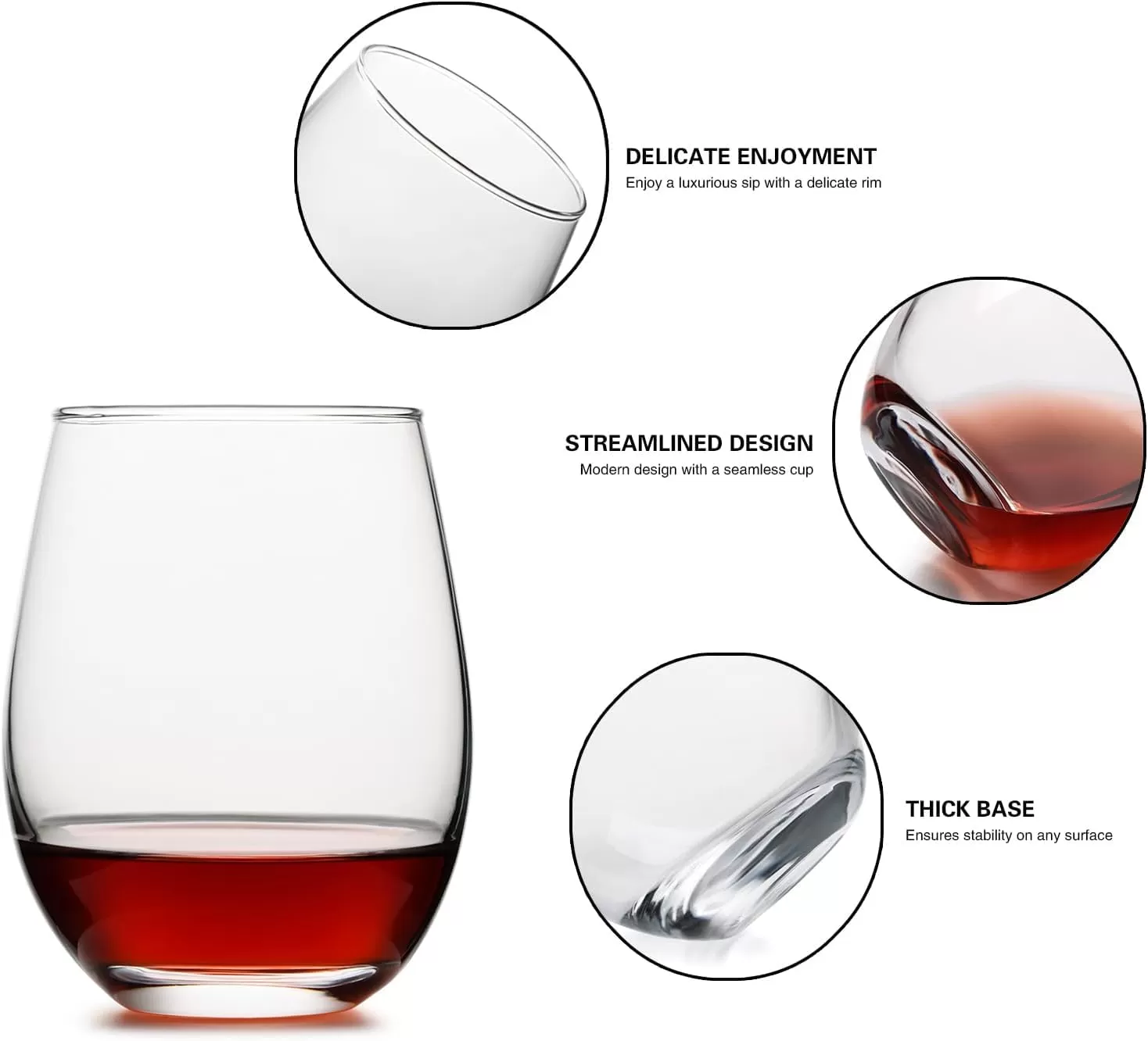 【多用途の魅力】: これらのステムレスワイングラスは、ほとんどのワインを引き立てるのに十分な多用途性があります。このセットをコレクションに加えて、友達と新しいレベルの楽しみを体験してください