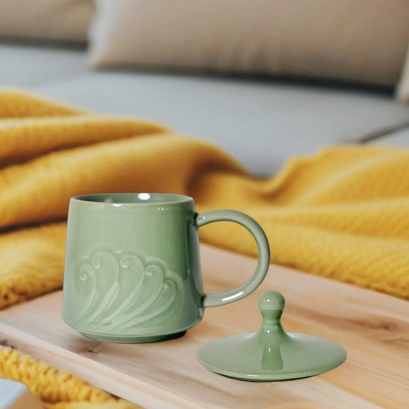 Celadon Cina Authentic: Ketukangan abadi dengan warisan budaya yang kaya. Teacup ini mempunyai reka bentuk gelombang yang tenang dan tudung seperti riak, melambangkan kuasa, keamanan dan keindahan semula jadi. The Celadon Glaze Shimmers perlahan dalam dua warna yang menakjubkan - hijau yang tenang dan hijau desa - masing -masing memancarkan keanggunan abadi.