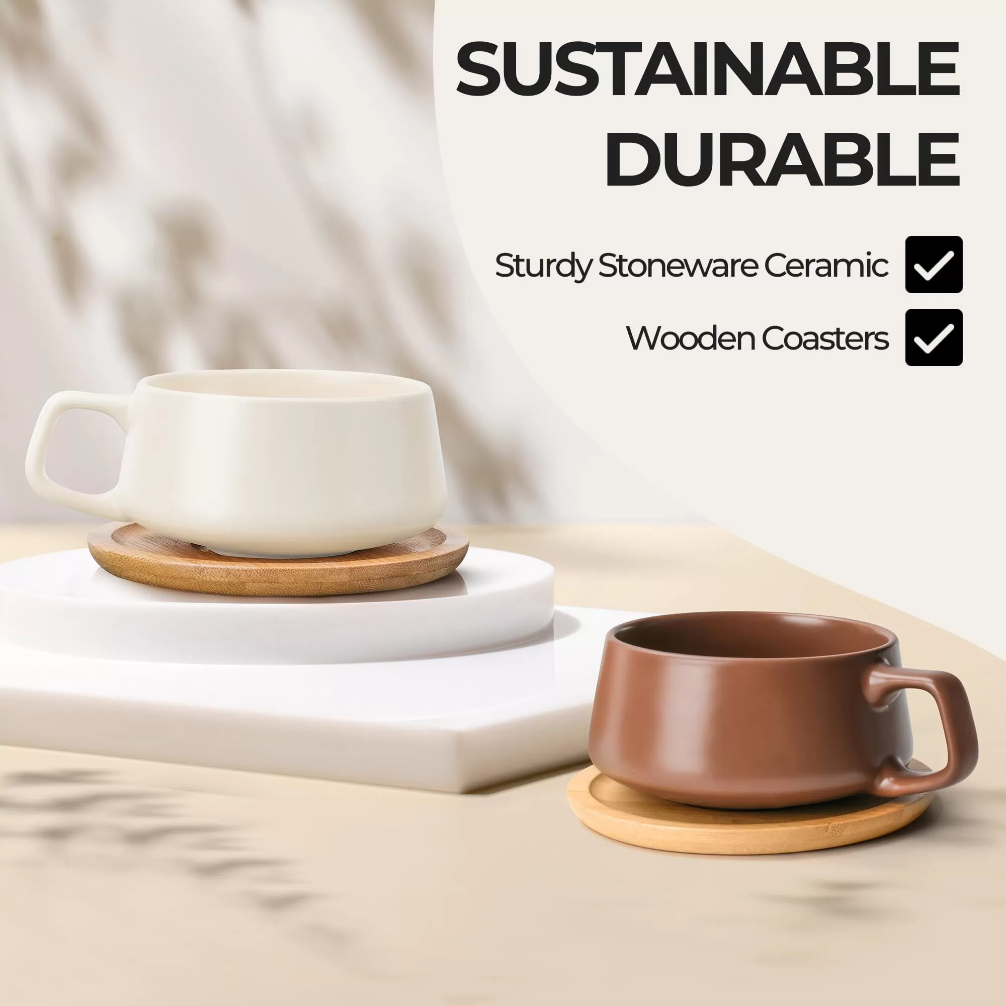 Artistik Cappuccino Cappuccino Seramik dengan Piring untuk Cafe Matcha, Double Espresso Cups Set