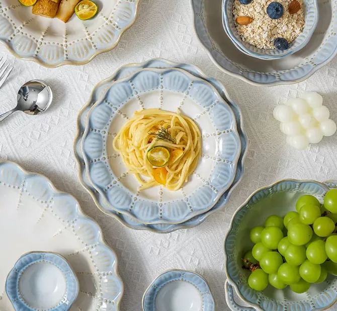 Chào mừng bạn đến mua đồ ăn uống đồ sành sứ với số lượng lớn. Đĩa và bát bán buôn bằng gốm sứ màu xanh nhạt của chúng tôi có thiết kế mới mẻ và trang nhã, phù hợp với nhiều không gian khác nhau. Cung cấp nhiều kích cỡ kết hợp, cách trình bày hoàn hảo từ món khai vị đến món tráng miệng. Gốm sứ chất lượng cao được chọn lọc có độ bền cao và dễ lau chùi, đồng thời hỗ trợ cung cấp và tùy chỉnh quy mô lớn.